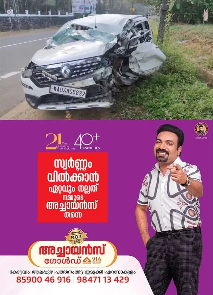 ശബരിമല തീർത്ഥാടകർ സഞ്ചരിച്ച കാർ ലോറിയുമായി കൂട്ടിയിടിച്ച് അപകടം; യാത്രക്കാർക്ക് പരിക്ക്