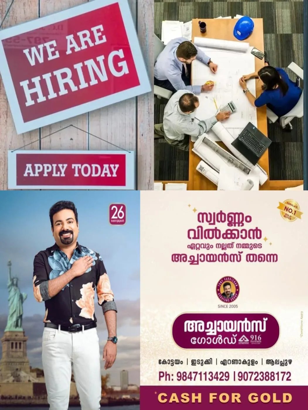 ഫാർമസിസ്റ്റ് ഹോമിയോ, ജി.എൻ.എം. നേഴ്സ്, മള്ട്ടിപർപ്പസ് വർക്കർ – കാരുണ്യ പ്രോജക്ട് എന്നീ തസ്തികകളിലേക്ക് കരാറടിസ്ഥാനത്തില് താല്ക്കാലിക റിക്രൂട്ട്മെന്റാണ് നടക്കുക. താല്പര്യമുള്ളവർ മെയ് 20ന് മുൻപായി തപാല് മുഖേനയോ, നേരിട്ടോ അപേക്ഷ നല്കണം.