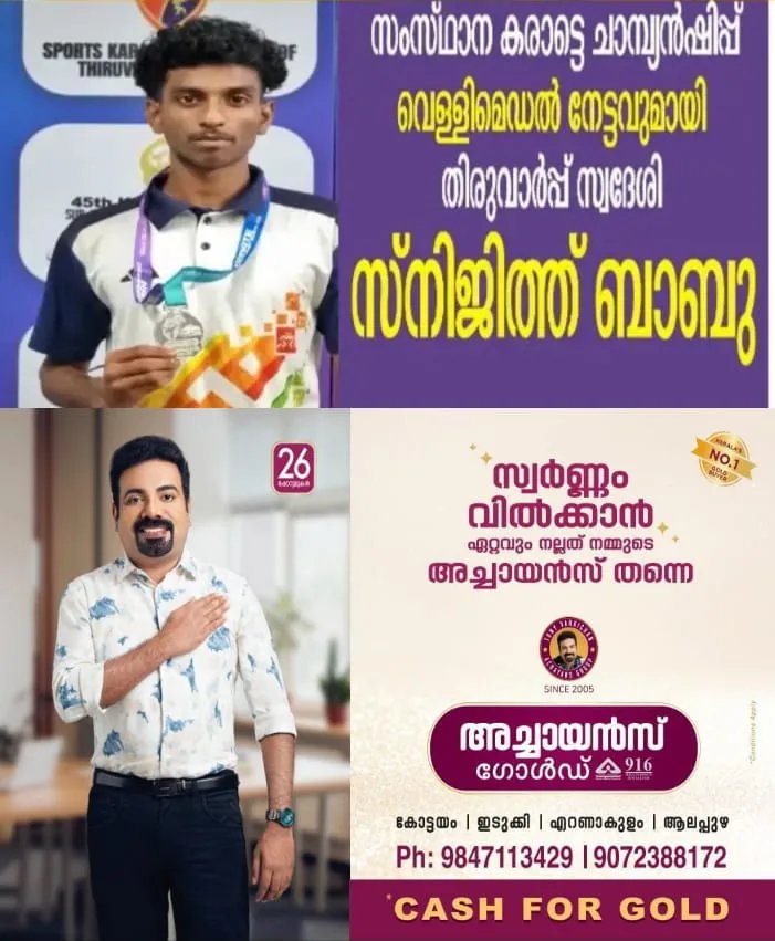 കോട്ടയം: 45-ാമത് കേരള സംസ്ഥാന കരാട്ടെ ചാമ്പ്യൻഷിപ്പിൽ വെള്ളിമെഡൽ കരസ്ഥമാക്കി