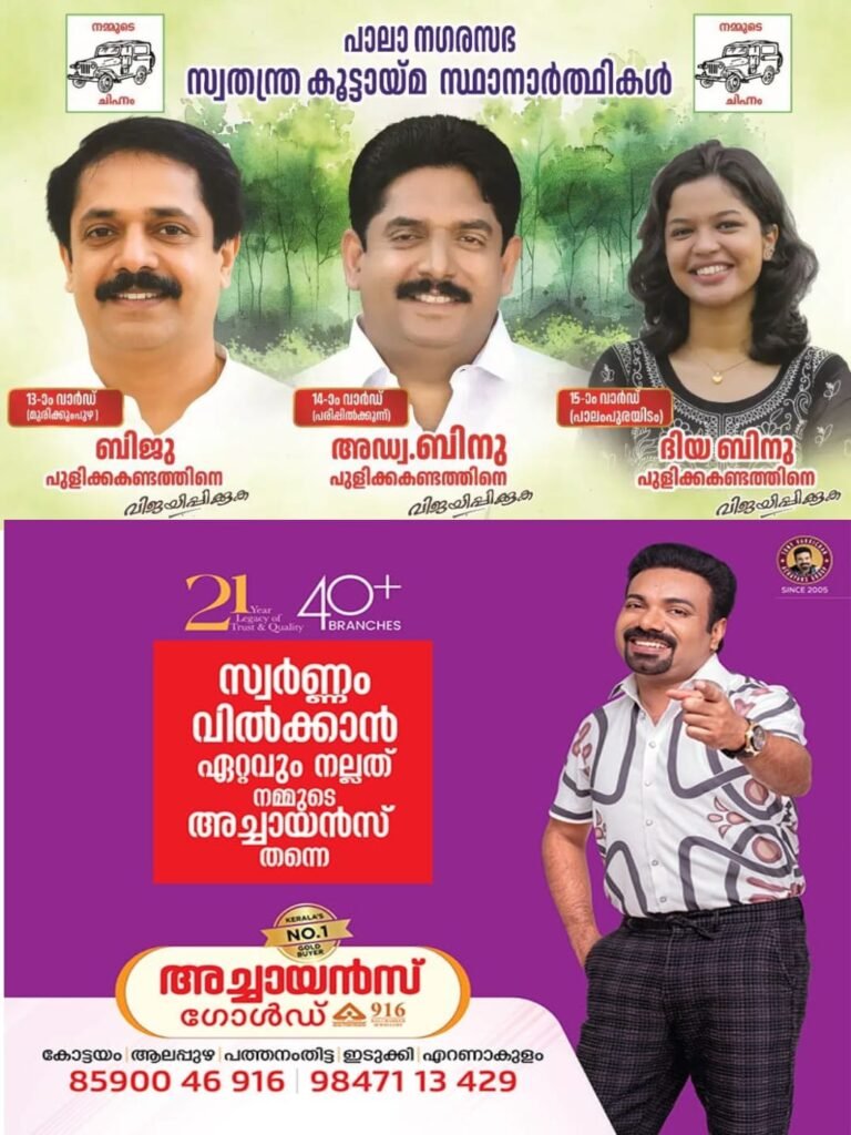 ജോസ് കെ മാണിയോട് മുട്ടി സിപിഎമ്മില്‍ നിന്ന് പുറത്തായ ബിനു പുളിക്കകണ്ടം കുടുംബത്തോടെ പോരിന്; മകളും ചേട്ടനും അടുത്തടുത്ത വാര്‍ഡുകളില്‍ അങ്കം കുറിക്കുന്നു; തദ്ദേശ തിരഞ്ഞെടുപ്പിലെ ഹൈലൈറ്റാകാൻ പാലാ…