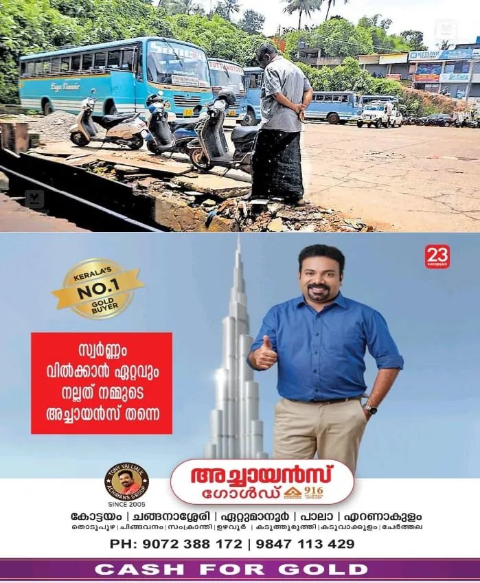 കാരണം ബസ് സ്റ്റാൻഡിലെ ഓടയിൽ കെട്ടിക്കിടക്കുന്ന വെള്ളത്തിൽ മീനുകൾ വളർന്നു തുടങ്ങി. മീനുകൾക്ക് ചൂണ്ടയിടാം. ബസ് സ്റ്റാൻഡിലെ ഓട നിർമാണം പാതി വഴിയിൽ നിലച്ചതോടെയാണ് ആഴ്ചകളായി ഓടയിൽ വെള്ളം കെട്ടിക്കിടക്കാൻ തുടങ്ങിയത്.