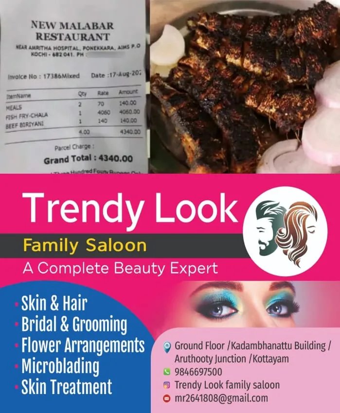 കൊച്ചി: വീട്ടിലെ ഭക്ഷണമാണ് ഇഷ്ടമെന്ന് പറഞ്ഞാലും പലപ്പോഴും ഹോട്ടല് ഭക്ഷണത്തേയും ആശ്രയിക്കേണ്ടി വരുന്നവരാണ് നമ്മളില് ഭൂരിഭാഗവും. കൊച്ചിയിലെ ഒരു ഹോട്ടലില് കിട്ടിയ ബില്ല് കണ്ടാല് പിന്നെ ജീവിതത്തില് ഒരിക്കലും ഹോട്ടലില് നിന്ന് ഭക്ഷണം കഴിക്കുന്നതിനെ കുറിച്ച് ചിന്തിക്കാന് പോലും തയ്യാറാകില്ല. കൊച്ചിയിലെ അമൃത ഹോസ്പിറ്റലിന് സമീപത്തുള്ള പോണേക്കരയിലെ ന്യൂ മലബാര് റസ്റ്റോറന്റില് നിന്ന് 70 രൂപ വിലയുള്ള രണ്ട് ഊണ്, 140 രൂപ ഈടാക്കുന്ന ഒരു ബീഫ് ബിരിയാണി പിന്നെ ഒരു ചാള വറുത്തത് എന്നിവയാണ് ഓര്ഡര് ചെയ്ത് കഴിച്ചത്.