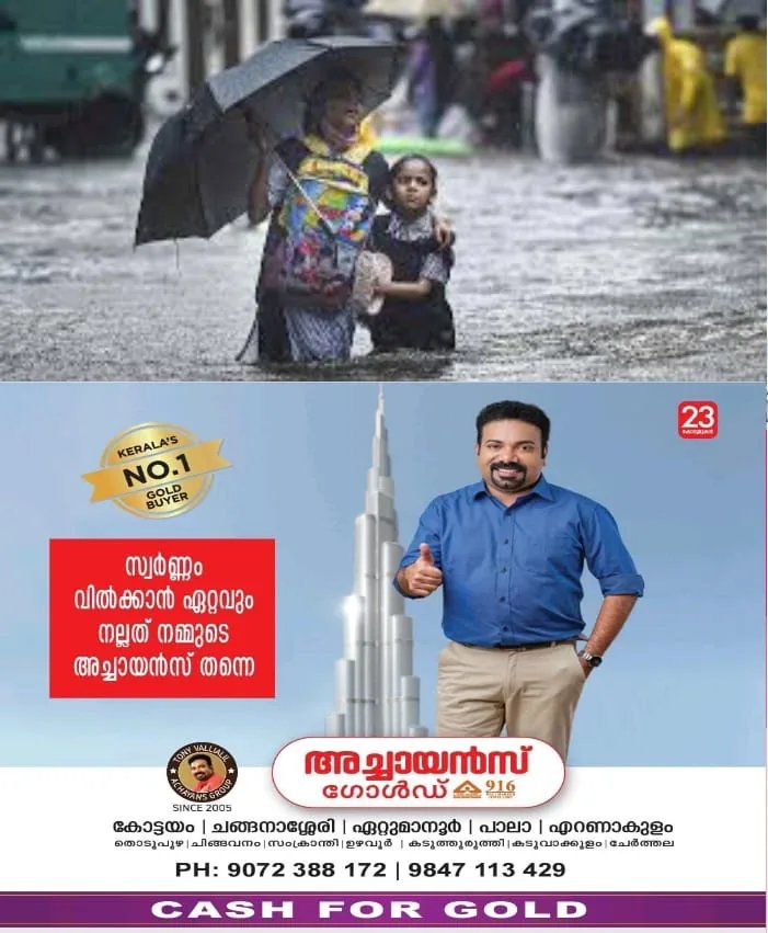 നാളെ പാലക്കാട്, മലപ്പുറം ജില്ലകളിലാണ് അതിശക്ത മഴ മുന്നറിയിപ്പായ ഓറഞ്ച് അലർട്ടുള്ളത്.