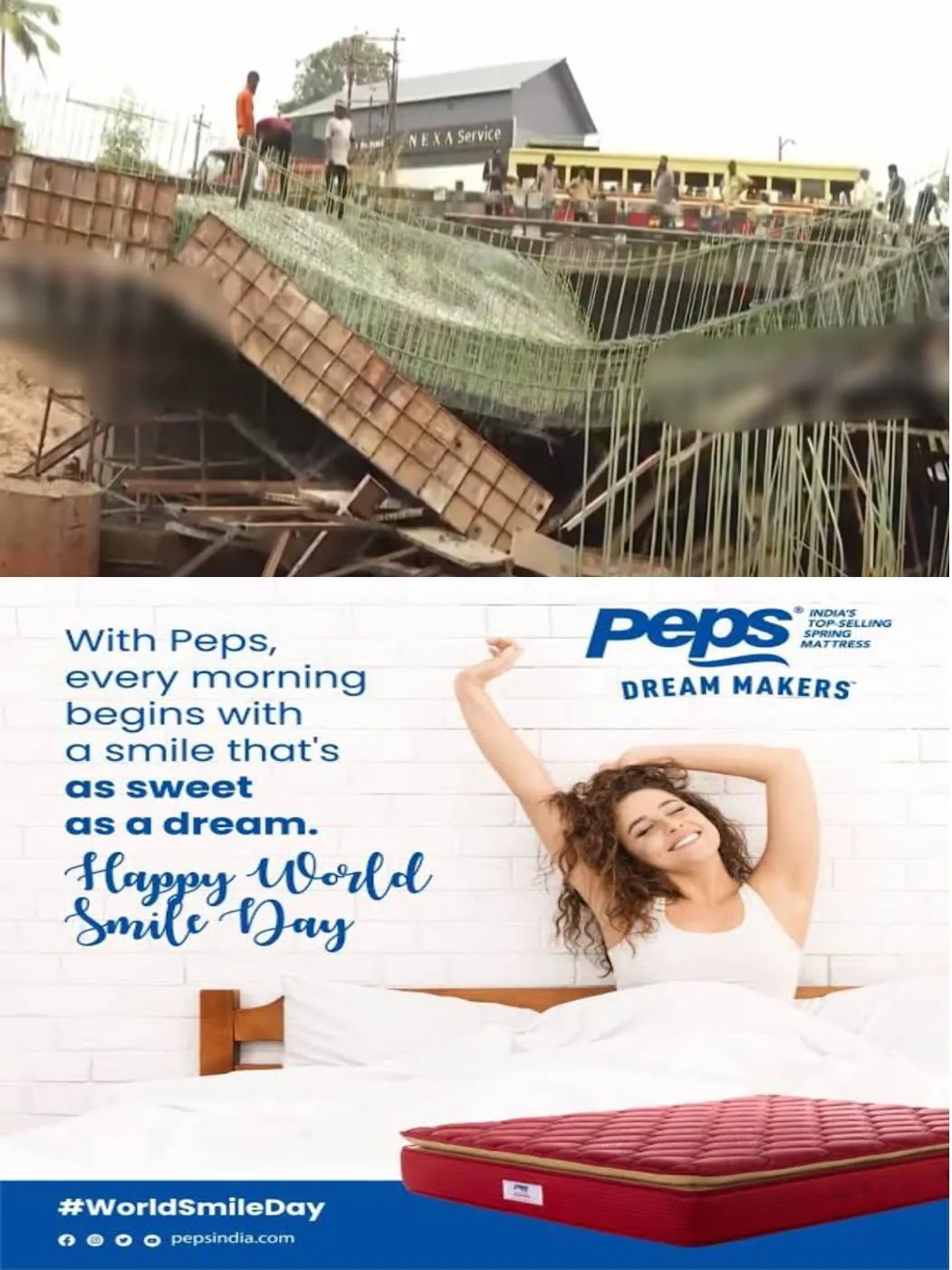 കോണ്ക്രീറ്റ് പ്രവൃത്തി നടക്കുന്നതിനിടെ പാലത്തിന് താഴെ സ്ഥാപിച്ചിരുന്ന കമ്പികള് വീഴുകയും പിന്നാലെ പാലം തകർന്നുവീഴുകയുമായിരുന്നെന്ന് പ്രദേശവാസികള് പറയുന്നു. അപകടസമയത്ത് പാലത്തിന്റെ മുകള്ഭാഗത്ത് നാല് തൊഴിലാളികളുണ്ടായിരുന്നു. അപകടമുണ്ടായ ഉടൻ ഇവർ ചാടിരക്ഷപ്പെട്ടു. ഇവർക്കാർക്കും പരിക്കില്ല.