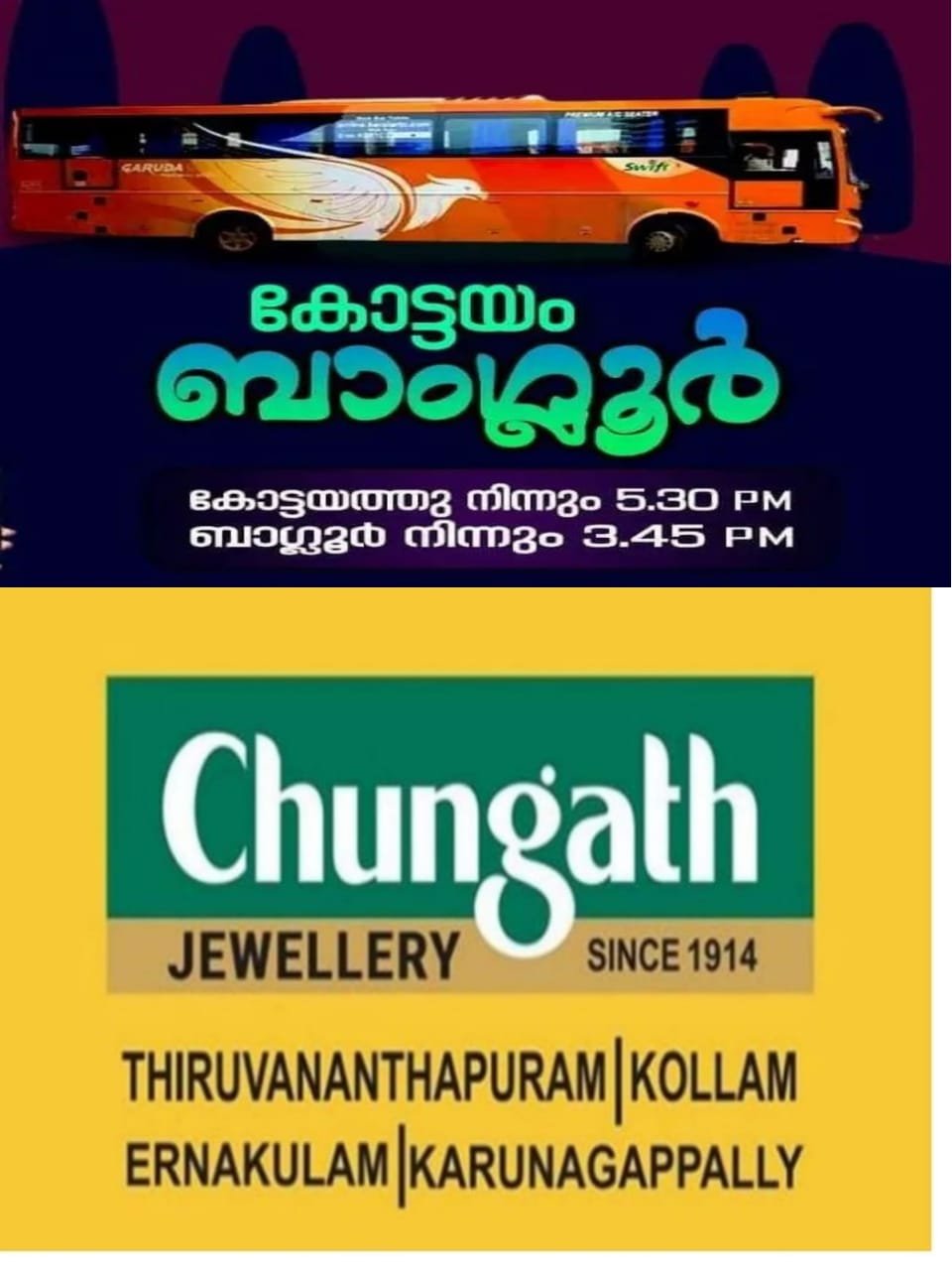 കോട്ടയത്തുനിന്ന് വൈകുന്നേരം – 5.30 ന് സര്വീസ് ആരംഭിച്ച് തൃശൂര്- പെരിന്തല്മണ്ണ- നിലമ്ബൂര് -ഗൂഡലൂര്- മൈസൂര് വഴി ബാംഗ്ലൂരില് രാവിലെ 6 മണിക്ക് എത്തിച്ചേരുന്നു.