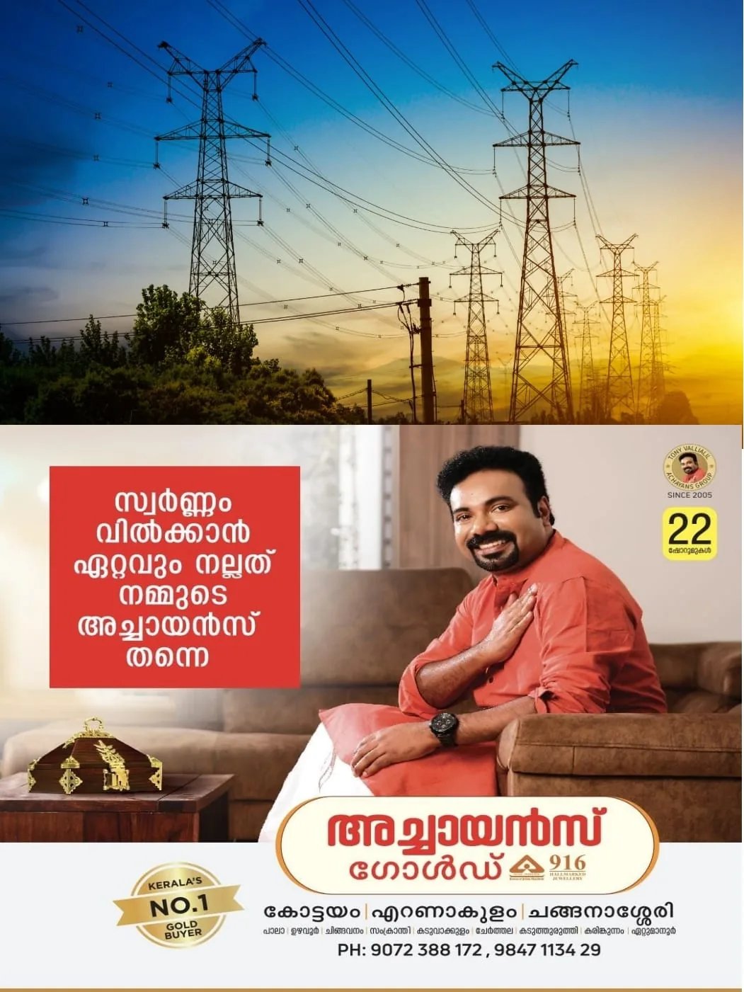 ചങ്ങനാശ്ശേരി ഇലക്ട്രിക്കൽ സെക്ഷന്റെ പരിധിയിൽ വരുന്ന ശ്രീശങ്കര MRK, പോലീസ് ക്വാർട്ടേഴ്സ് , വെയർ ഹൗസ് ,പാലാക്കുന്നേൽ, ഹോസ്പിറ്റൽ, ടി.ബി റോഡ്, ഹിദായത്ത്, കാവിൽ ടെമ്പിൾ, റവന്യൂ ടവർ, ആനന്ദപുരം, HT SM സിൽക്സ്, HT BSNL എന്നീ ട്രാൻസ്ഫോർമറുകളിൽ രാവിലെ 9 മുതൽ വൈകുന്നേരം 5 മണി വരെയും ആദിത്യ ടവർ, മറാട്ടുകുളം, പി.പി ജോസ് റോഡ്, സെൻട്രൽ ജംഗ്ഷൻ, നിത്യ, ചക്കുപുരയ്ക്കൽ എന്നീ ട്രാൻസ്ഫോർമറുകളിൽ ഭാഗീകമായും വൈദ്യുതി മുടങ്ങുന്നതാണ്.