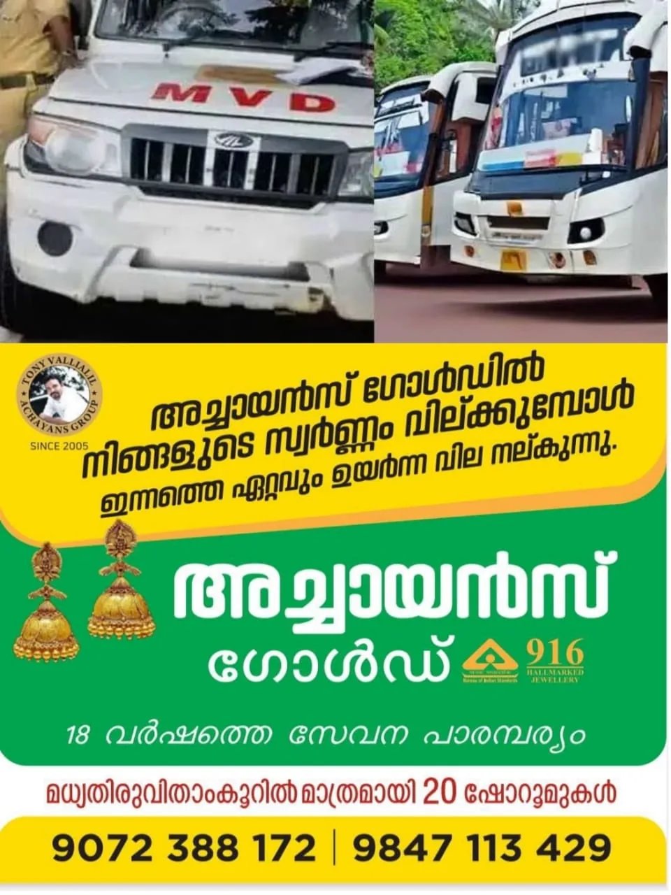 2022 ഒക്ടോബറിലാണ് വടക്കാഞ്ചേരിയില് കെ.എസ്.ആർ.ടി.സി ബസിന് പിന്നില് ടൂറിസ്റ്റ് ബസ് ഇടിച്ചുണ്ടായ അപകടത്തില് ഒൻപതുപേർ മരിച്ചത്.