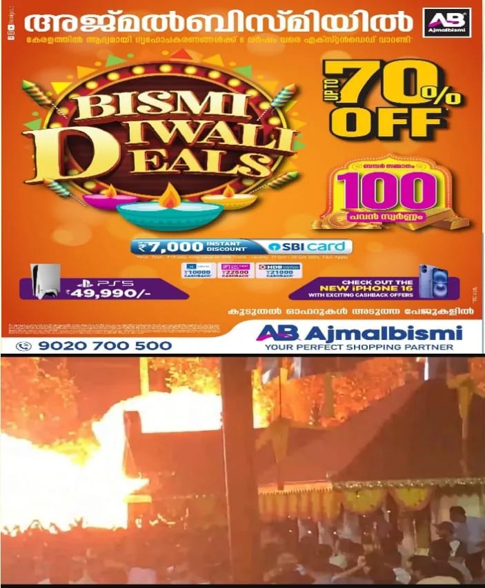 മൂവാളംകുഴി ചാമുണ്ഡി തെയ്യത്തിന്റെ കുളിച്ചുതോറ്റ ചടങ്ങ് പുരോഗമിക്കുന്നതിനിടെയാണ് കമ്പപ്പുര തീഗോളമായി മാറിയത്.