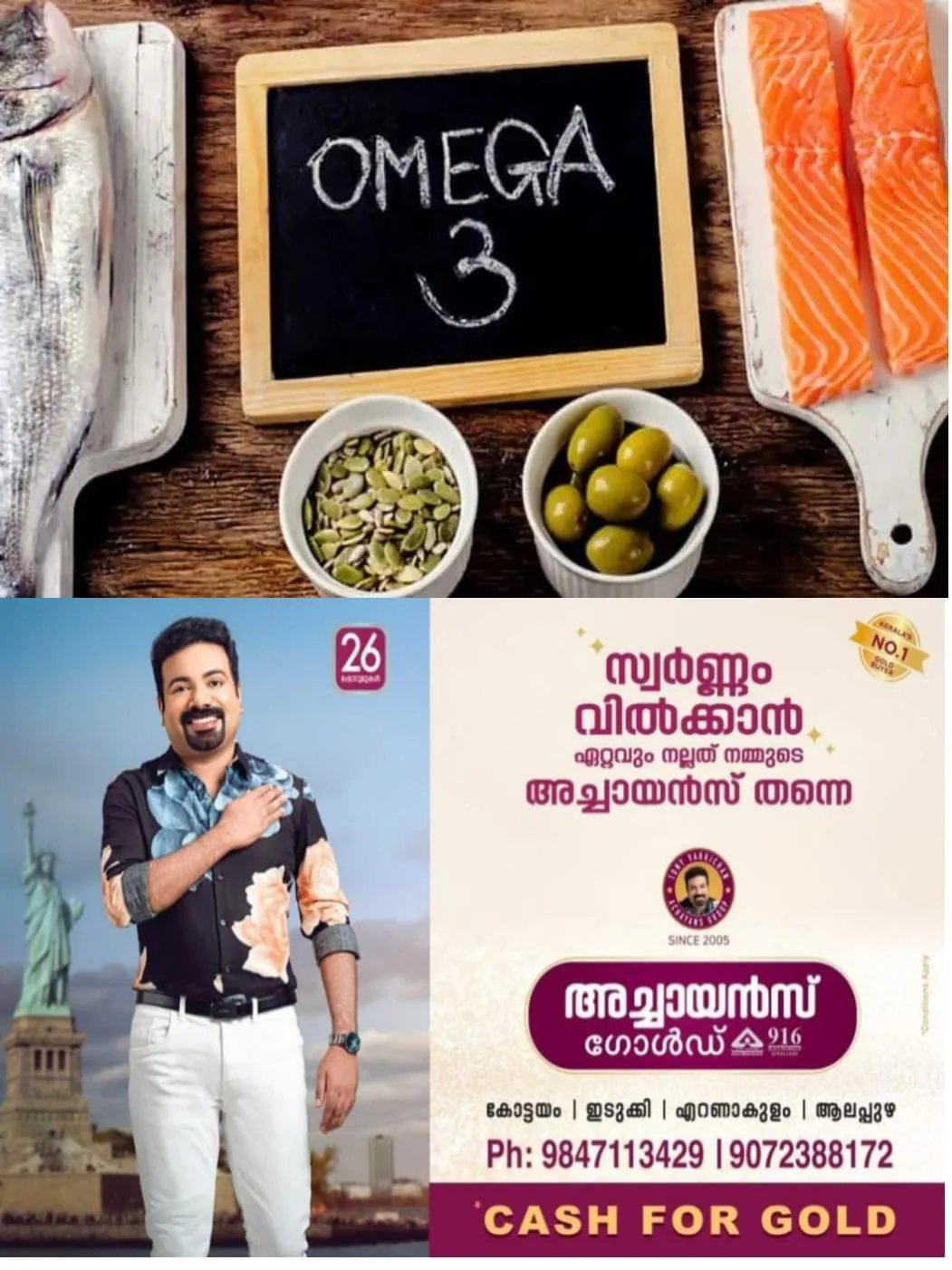 കോട്ടയം: ശരീരത്തിനാവശ്യമായ കൊഴുപ്പുകളിലൊന്നാണ് ഒമേഗ 3 ഫാറ്റി ആസിഡ്. ഹൃദയത്തിന്‍റെ ആരോഗ്യം മുതല്‍ തലച്ചോറിന്‍റെ ആരോഗ്യത്തിന് വരെ ഒമേഗ 3 ആസിഡ് ആവശ്യമാണ്.