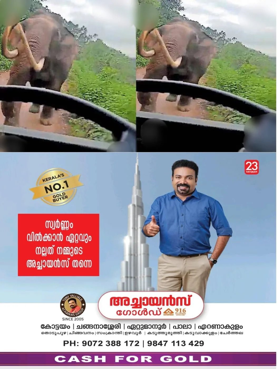 ഡ്രൈവര് വാഹനം പിന്നിലേക്ക് ഓടിച്ചതിനെത്തുടര്ന്നു പടയപ്പ പിന്മാറി. ബുധനാഴ്ച വൈകിട്ട് 4.30നു മാട്ടുപ്പെട്ടി കുട്ടിയാര്വാലിയിലാണു സംഭവം.