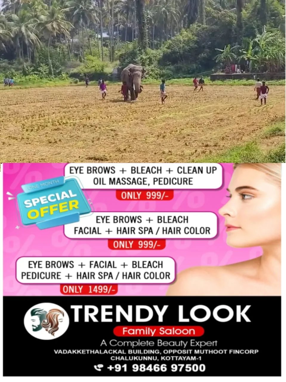 പറമ്പിൽ കെട്ടിയിട്ട പോത്തിനെ കണ്ട് ആന വിരണ്ടോടി, ആനയെ കണ്ട് നാട്ടുകാരും