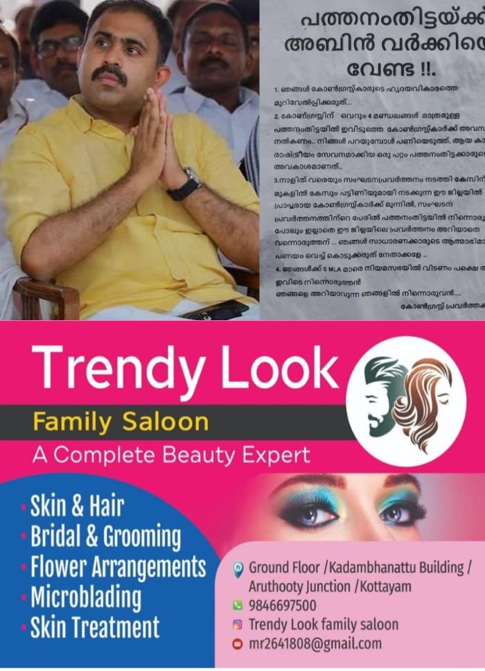 “നാളിത് വരെയും സംഘടനാപ്രവർത്തനം നടത്തി കേസിന് മുകളിൽ കേസും പട്ടിണിയുമായി നടക്കുന്ന ഈ ജില്ലയിൽ നിന്നും പ്രാപ്തരായ കോൺഗ്രസുകാർക്ക് മുന്നിൽ സംഘടന പ്രവർത്തനത്തിന്റെ പേരിൽ പത്തനംതിട്ടയിൽ നിന്നൊരു കേസ് പോലും ഇല്ലാതെ ഈ ജില്ലയിലെ പ്രവർത്തനം അറിയാതെ വന്നൊരുത്തന് ഞങ്ങൾ സാധാരണക്കാരുടെ ആത്മാഭിമാനത്തെ പണയം വച്ച് കൊടുക്കരുത് നേതാക്കളെ” എന്നാണ് പോസ്റ്ററിൽ പറയുന്നത്. തങ്ങൾക്ക് അഞ്ച് എംഎൽഎമാരെ നിയമസഭയിൽ വിടണമെന്നും പക്ഷേ അത് തങ്ങളിൽ ഒരാൾ ആയിരിക്കണമെന്നും പോസ്റ്ററിലുണ്ട്.