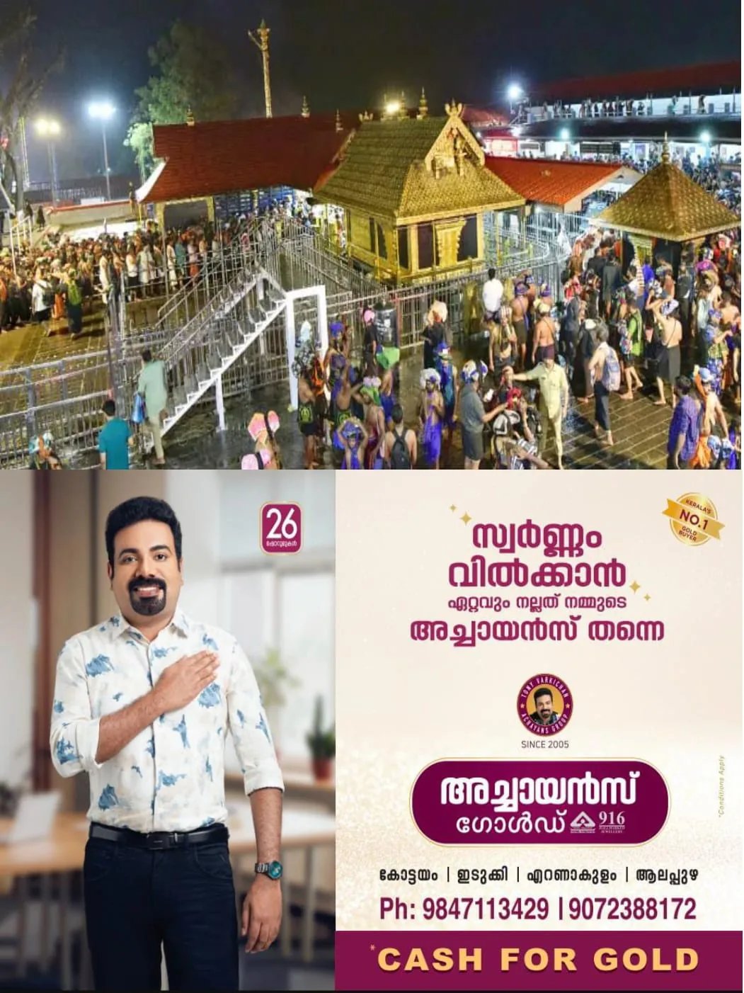 ആറരയോടെ അയ്യപ്പന് തിരുവാഭരണം ചാർത്തി മഹാദീപാരാധന.