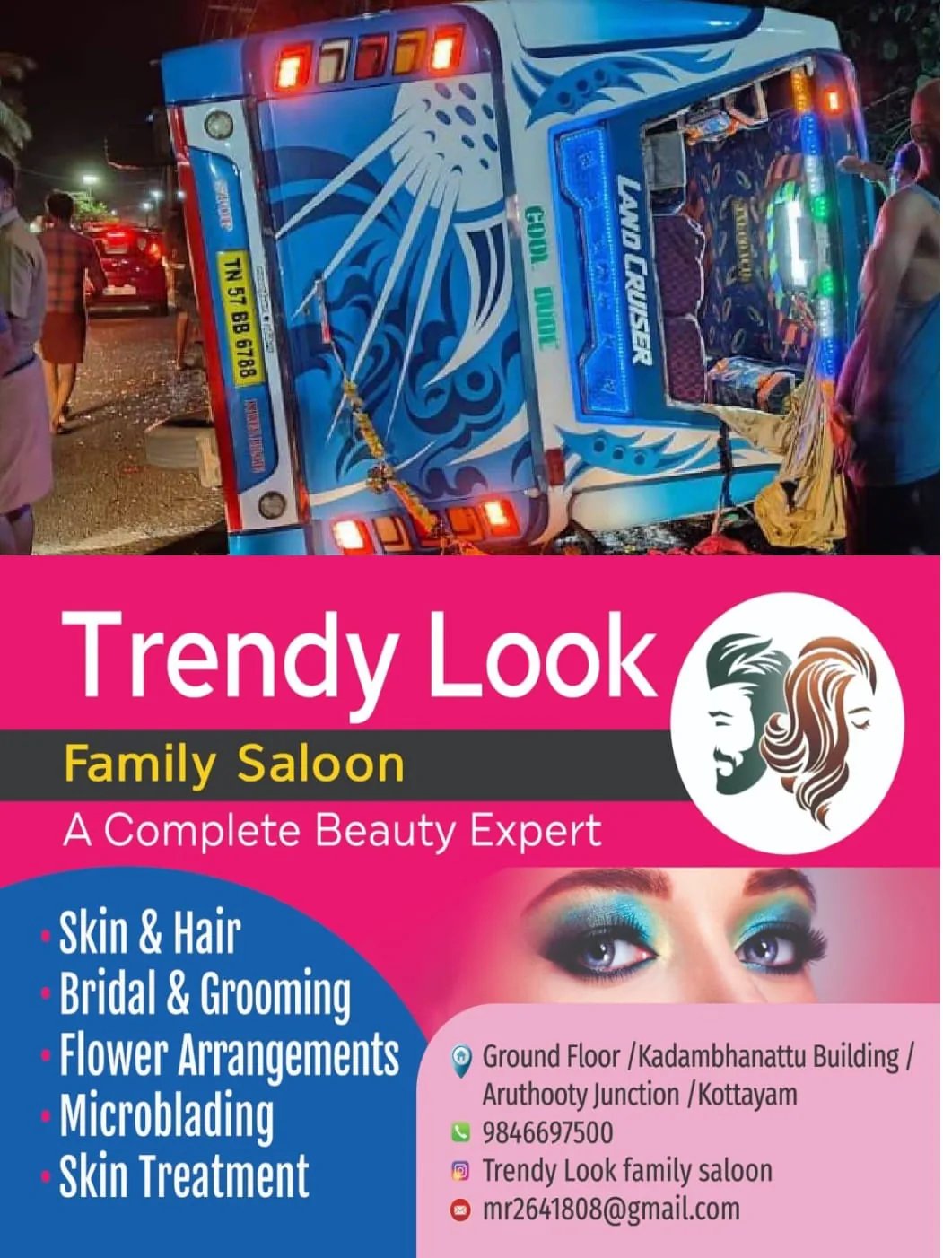 നിയന്ത്രണം തെറ്റിയ വാഹനം മണ്തിട്ടയിലിടിച്ച് റോഡില് മറിയുകയായിരുന്നു.