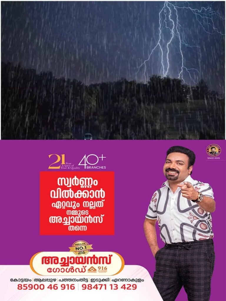 കേരളത്തില്‍ ഒറ്റപ്പെട്ടയിടങ്ങളില്‍ ഇന്ന് (20/04/2026) മുതല്‍ 22/04/2026 വരെ ഇടിമിന്നലോട് കൂടിയ മഴയ്ക്കും മണിക്കൂറില്‍ 40-50 കിലോ മീറ്റർ വരെ വേഗതയില്‍ ശക്തമായ കാറ്റിനും സാധ്യതയുണ്ടെന്ന് കേന്ദ്ര കാലാവസ്ഥ വകുപ്പ് അറിയിച്ചു.