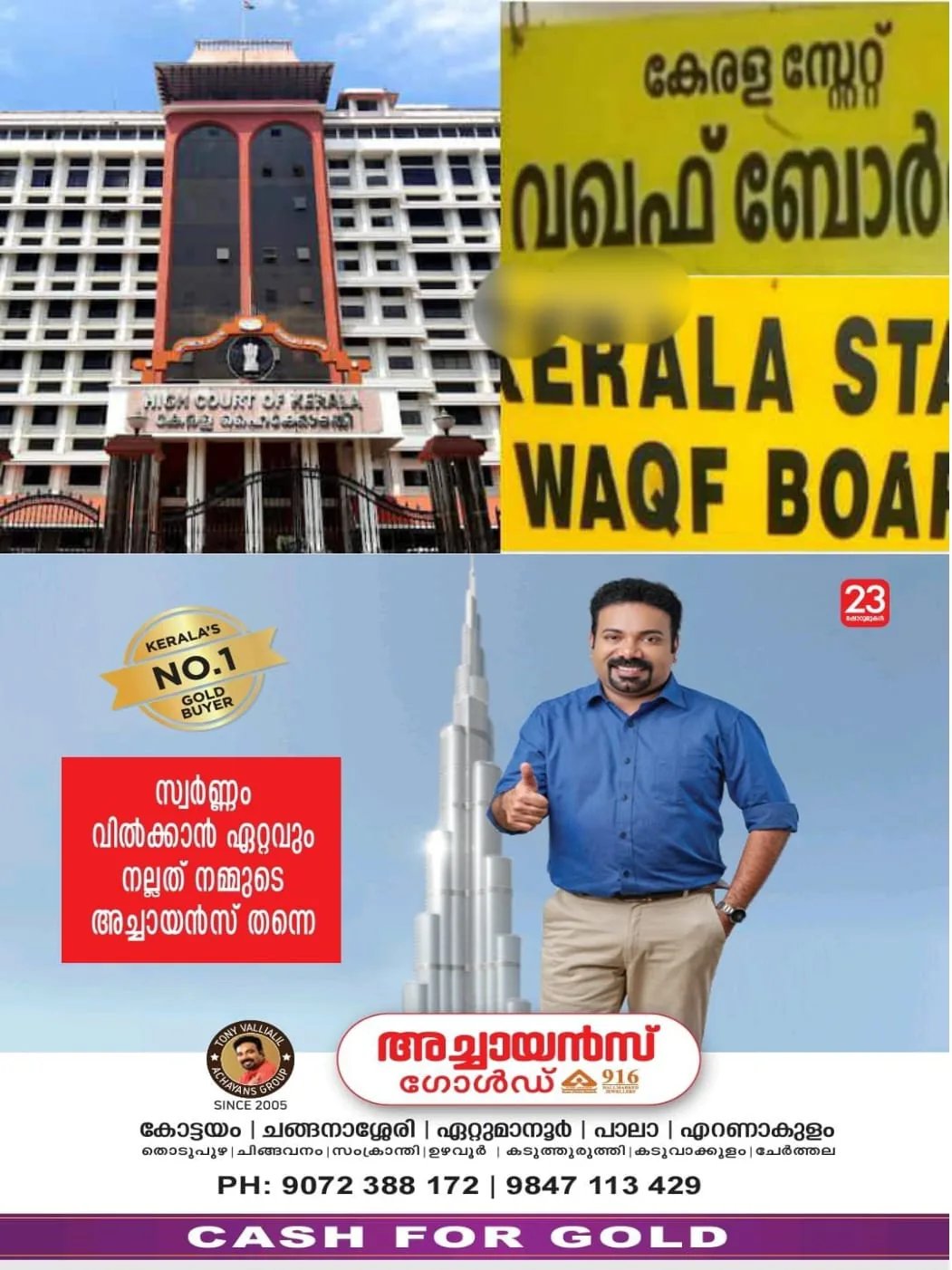 വഖഫ് ഭൂമി കൈവശം വച്ചുവെന്ന് ആരോപിച്ച് രജിസ്റ്റര് ചെയ്ത കേസ് ഹൈക്കോടതി റദ്ദാക്കി. കാലിക്കറ്റ് പോസ്റ്റല് ഡിവിഷന് സീനിയര് സൂപ്രണ്ട്, മാരിക്കുന്ന് സബ് പോസ്റ്റ് മാസ്റ്റര് എന്നിവര്ക്കെതിരായ കേസാണ് റദ്ദാക്കിയത്.