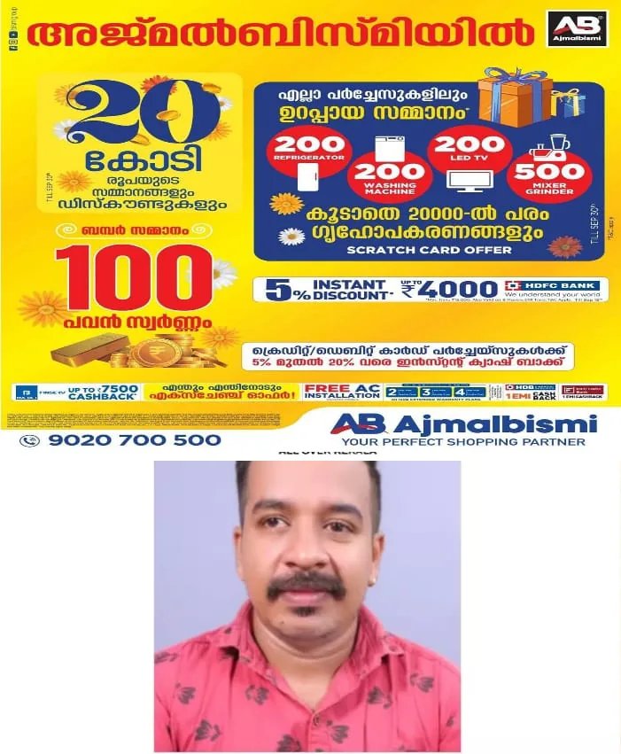 അഞ്ചു മുതല് ഒൻപതു വരെയുള്ള സമ്മാനങ്ങളായി യഥാക്രമം 5000, 2000, 1000, 500, 300 രൂപയും നല്കും.